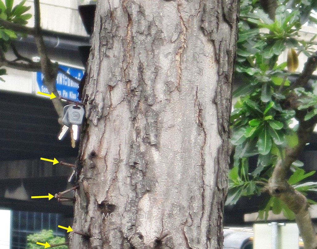 และก็มีเหมือนกันที่ใช้การตอกตะปูต้นไม้เพื่อเป็นการ